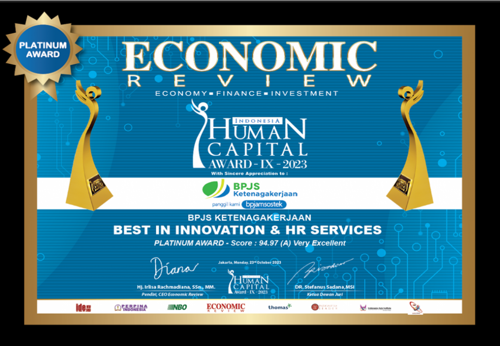 EconomicReview – BPJS Ketenagakerjaan berjaya di ajang Indonesia Human Capital Award (IHCA) 2023 yang diinisiasi Economic Review. Dua penghargaan bergensi di bidang Human Capital (HC) sukses diboyong pulang. Pertama, BPJS menyabet Platinum Award untuk The Best In Inovation & HR Services 2023. Satu lagi, penghargaan yang menobatkan M Aditya Warman, anggota Dewan Pengawas sebagai The Best Indonesia Human Capital Leader 2023.