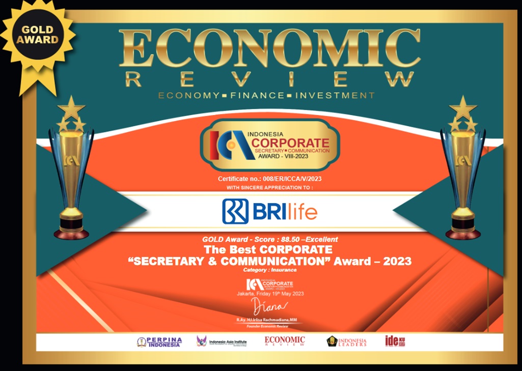 EconomicReview – Dalam ajang Indonesia Corporate Secretary & Communication Awards (ICCA_VIII_2023), PT Asuransi BRI Life sukses meraih Gold Award dengan skor 88.50 (Excellent). Penghargaan ini menempatkan BRI Life sebagai anak usaha Bank BRI (BUMN) berkinerja Excellent sekaligus sebagai The Best Corporate Secretary dan Corporate Communication Award 2023 untuk kategori perusahaan asuransi.