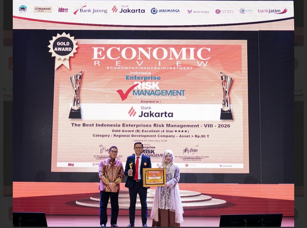 EconimicReview – Bank Jakarta berhasil meraih The Best Indonesia Enterprises Risk Management – VIII – 2026, Gold Award – Excellent, Category : Regional Development Company– Asset > Rp. 90T.