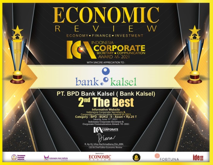 Tak mengherankan jika Bank Kalsel memperoleh penghargaan 2nd The Best Informative Website 2021 dalam ajang tahunan Indonesia Corporate Secretary & Corporate Communication Award VI 2021 untuk kategori BPD BUKU II dengan aset kurang dari Rp25 triliun.