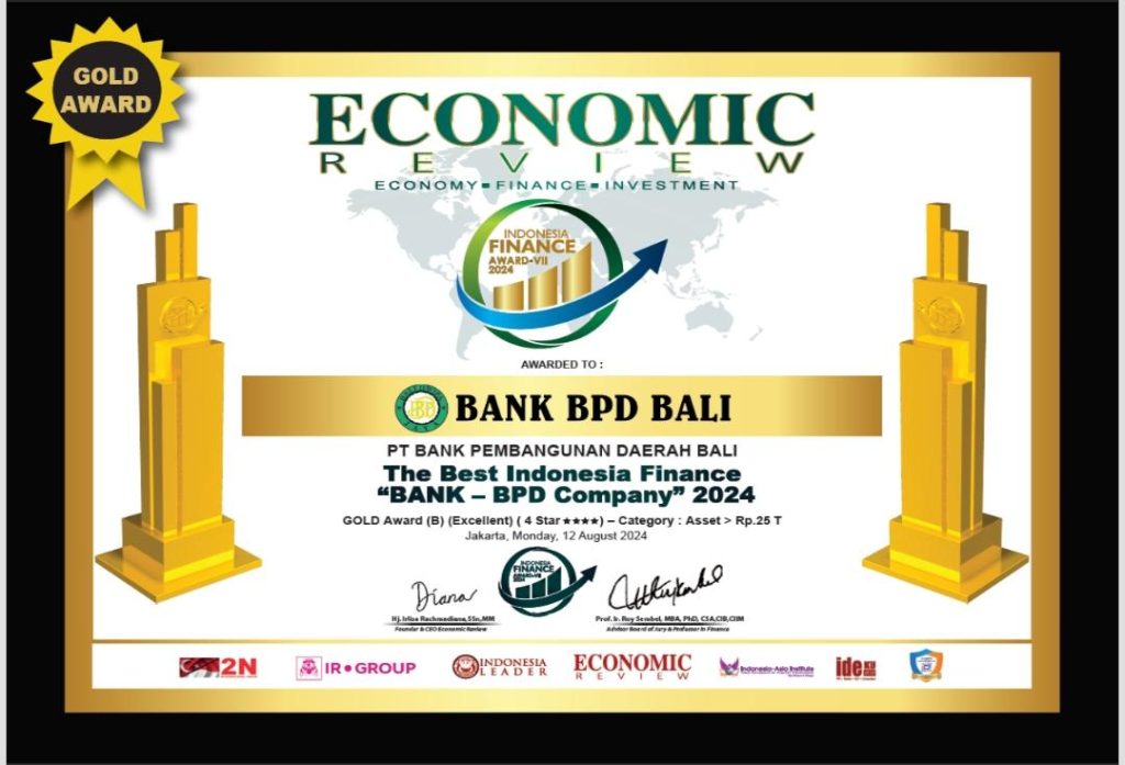 Bank BPD Bali berhasil meraih The Best Indonesia Finance “Bank – BPD Company” 2024. Gold Award –Excellent Category asset > Rp. 25 T pada ajang Indonesia Finance Award-VIII 2024.
