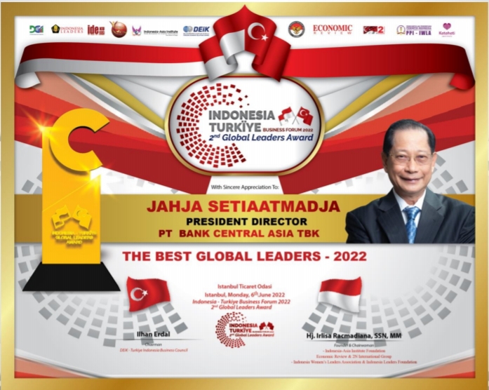 EconomicReview – Kinerja terbaik dan selalu konsisten yang ditunjukkan oleh PT Bank Central Asia Tbk (BCA) membuat perusahaan diganjar dua penghargaan bergengsi sekaligus pada ajang Indonesia-Turkiye Business Forum &  Global Leaders Award II -2022.