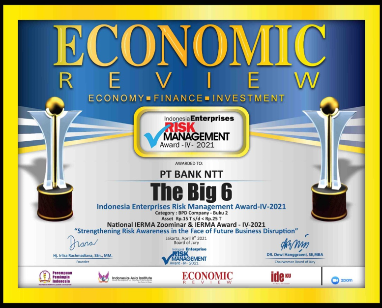 EconomicReview – PT Bank NTT telah dikenal sebagai bank daerah terbaik untuk kategori aset dibawah Rp10 triliun. Predikat semakin lengkap dengan diperolehnya penghargaan The Big 6 Indonesia Enterprises Risk Management IV 2021 untuk kategori BPD BUKU II dengan aset Rp15 triliun sampai dengan kurang dari Rp25 triliun.