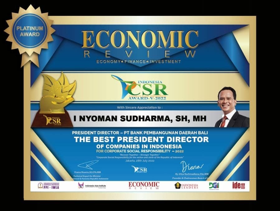 EconomicReview – PT Bank Pembangunan Daerah Bali atau yang biasa dikenal dengan Bank BPD Bali kembali menorehkan prestasinya pada ajang Indonesia CSR Award-V-2022 (ICSRA-V-2022).