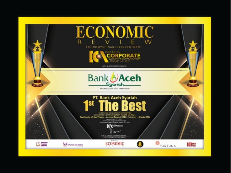 Sejauh ini Bank Aceh Syariah dinilai telah sukses dalam menjalankan perseroan dengan baik sehingga pantas diapresiasi 1st The Best Indonesia Corporate Secretary & Corporate Communication Award -VI-2021, Continuity of the Theme – Annual Report 2021, Category : Sharia BPD oleh Majalah Economic Review pada ajang ICCA 2021.