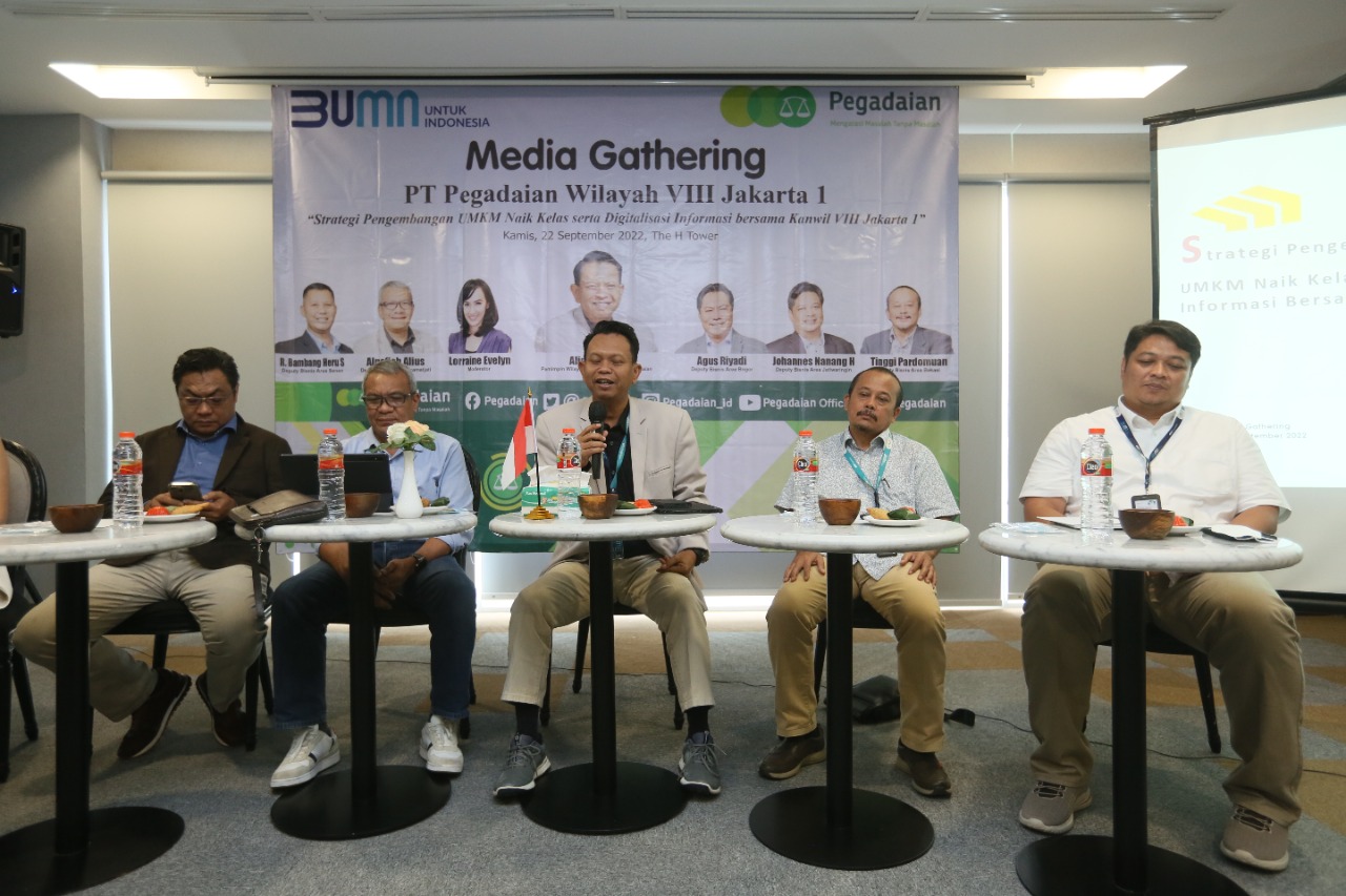 EconomicReview-PT Pegadaian ( Persero) Kanwil VIII Jakarta 1, hari ini kamis 22 September 2022, menggelar Media Gathering yang bertema “Strategi Pengembangan UMKM Naik Kelas serta Digitalisasi Informasi bersama Kanwil VIII Jakarta 1”. Acara ini merupakan inisiatif dari PT Pegadaian Wilayah VIII Jakarta 1 dalam menyikapi perkembangan UMKM di Indonesia , serta digitalisasi informasi dan pencapaian Kanwil VIII dari awal tahun 2022 hingga sekarang.