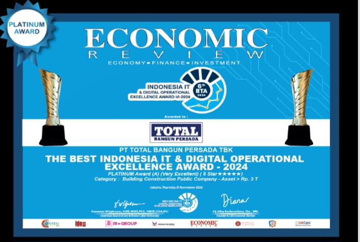 PT Total Bangun Persada Tbk, menjadi salah satu perusahaan yang mendapat penghargaan ini. Dari hasil penilaian yang diketuai oleh dewan juri, Gunawan Witjcaksono, Rektor Cyber University, Total Bangun Persada berhasil meraih Platinium Award dengan score 90.60.  Dan berhak mendapatkan predikat sebagai The Best Indonesia IT & Digital Operation Excellence Award-Category : Building Construction Public Company – Asset > 3 T.